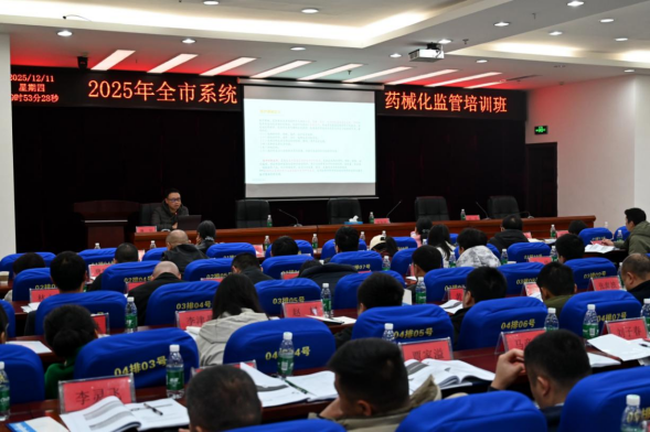 ??? 2025年12月11日-12日,邵陽市市場監督管理局組織開展全市系統藥械化監管培訓班,市市場監管局黨組成員、副局長張備清出席開班式并作動員講話。來自各縣市區市場監管局及基層監管所的120余名藥械化監管業務骨干參加。