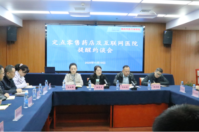??? 為進一步加強醫療保障基金監管,壓實定點醫藥機構合規使用醫保基金的主體責任,確保基金安全高效運行,11月18日上午,市醫保局組織定點零售藥店及互聯網醫院召開提醒約談會。省醫保局基金監管處一級調研員廖秋敏同志到會指導,市醫保局黨組成員、副局長熊慧平同志出席會議并作提醒約談講話,南昌市主要定點零售藥店、互聯網醫院負責及各相關醫保部門負責人30余人參加會議。