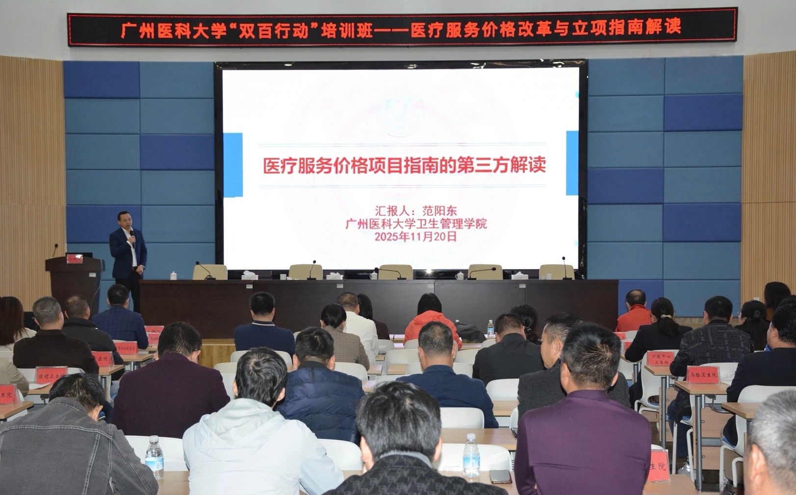??? 培訓課上,廣州醫科大學衛生管理學院副院長范陽東教授擔任主講,圍繞“醫療服務價格改革與立項指南”這一主題,為學員們帶來一場內容翔實、見解獨到的專題講座。范教授的講解深入淺出,緊密結合實際,對改革的核心要點與立項申報的具體流程進行系統梳理和權威解讀,有效提升與會人員對政策的理解水平和實務操作能力。